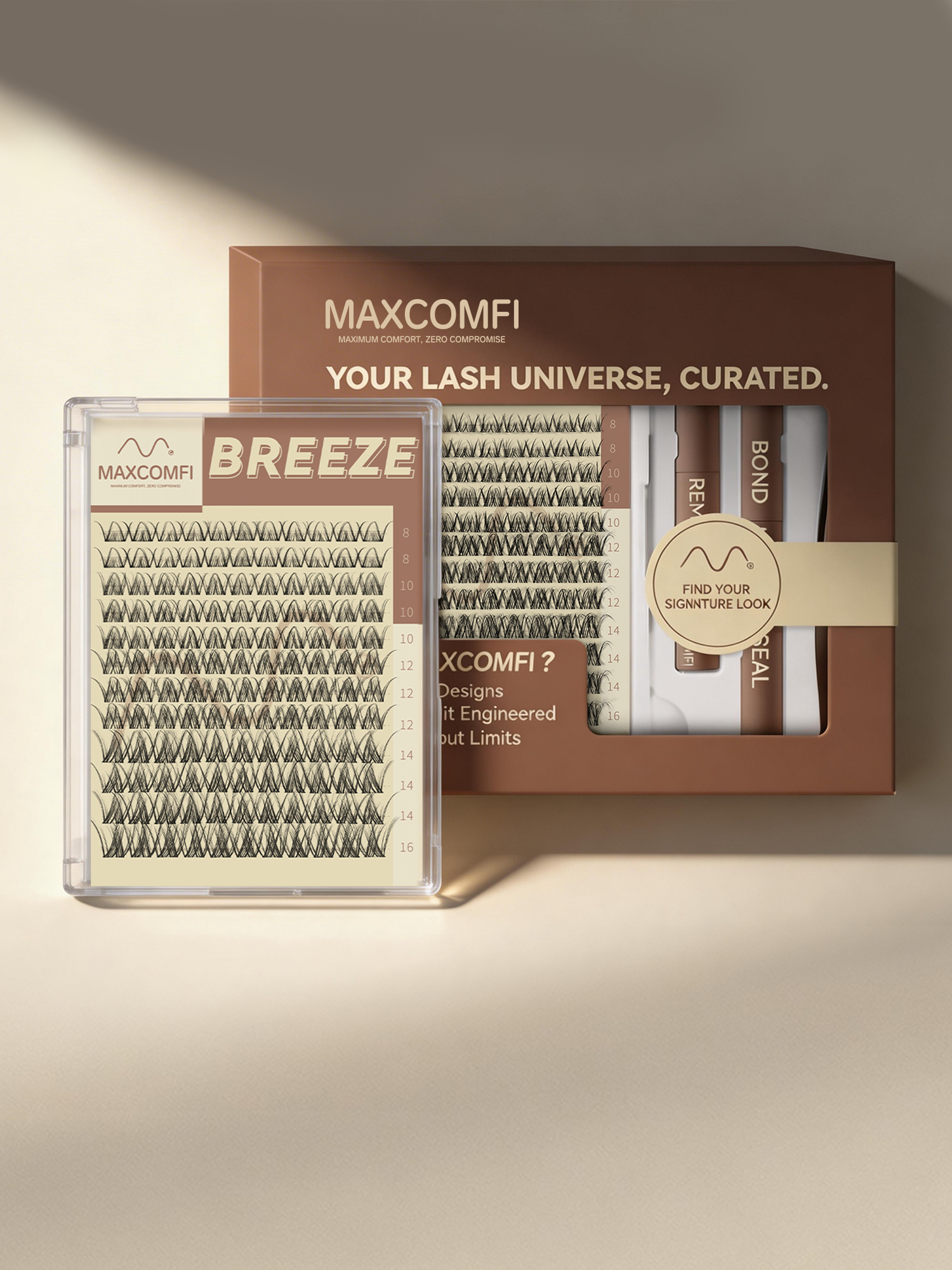 ZEROFEEL™ invisible band lashes feature a 0.05mm ultra-thin clear lash band for seamless, natural-looking volume. Lightweight, waterproof, and long-lasting—perfect for everyday wear without eyeliner.